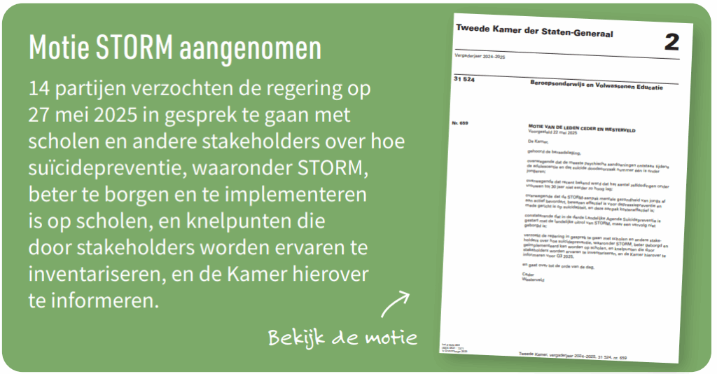 Motie STORM roept op: stimuleer om STORM beter te borgen en te implementeren op scholen.